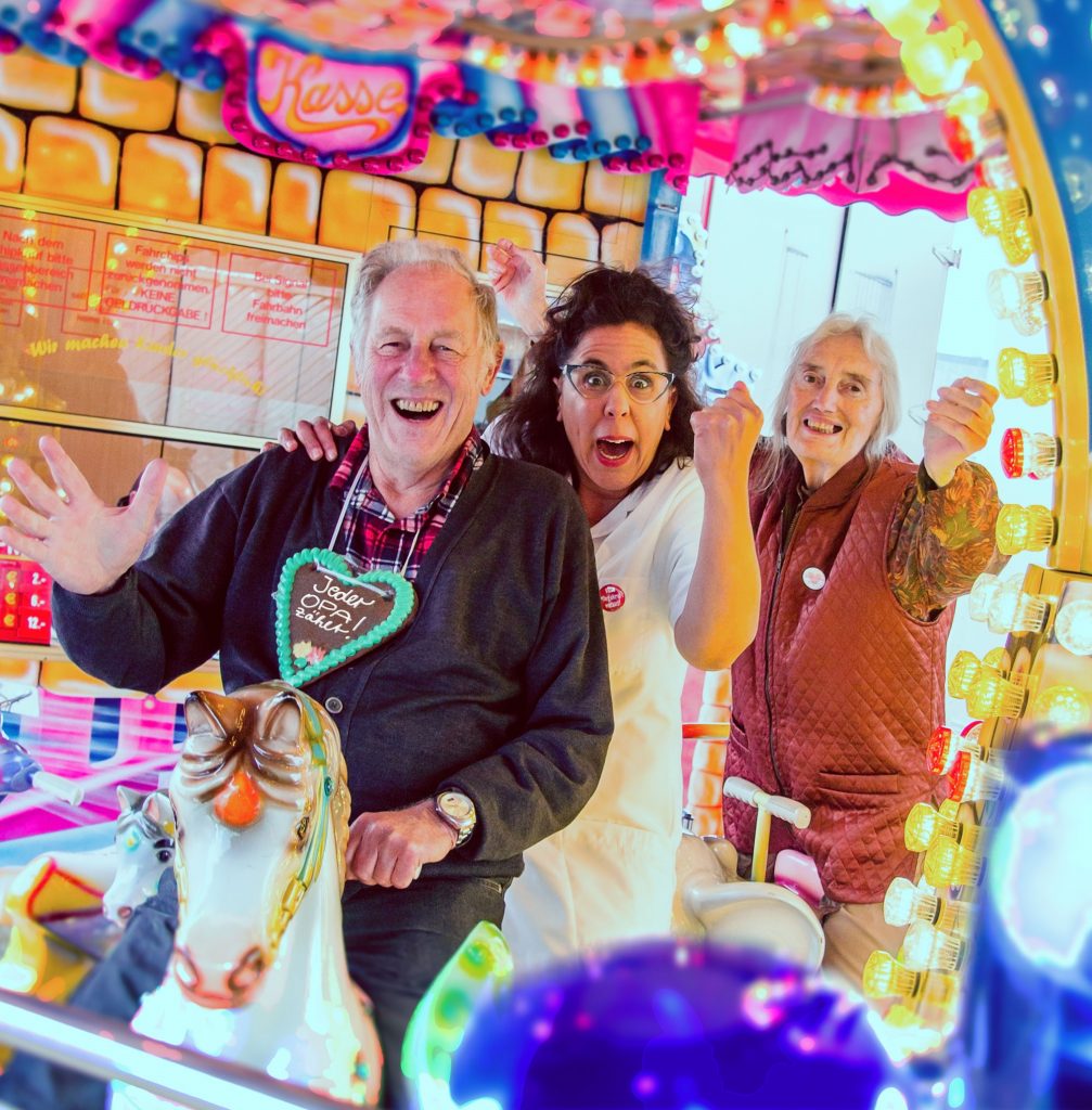Autoschlange bei Mc Drive? Wenn da ein alter Herr zu Fuß durch muss, hilft nur eins: Bullatschek. Nach dem Motto „Ich darf das, ich bin Pflägekraft!“ schafft sie gnadenlos freie Bahn. Polizeikontrolle? Dann legt sie sich eben mit den Ordnungskräften an. Alles für die Alten! Sogar Gymnastik, bis hin zum „doppelten Bettlupfer“. Näbenbei hat die Pflägekraft der Herzen durchaus eigene Absichten. Besonders beim Brautstraußfangen, da greift die Bullatschek gern mal zum Bodycheck. Kurz, auch für ihr 4. Programm gilt: Gebiss festhalten – läbensecht!